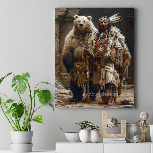 Guardian Spirits: Bear, Eagle, and Warrior Native American Canvas