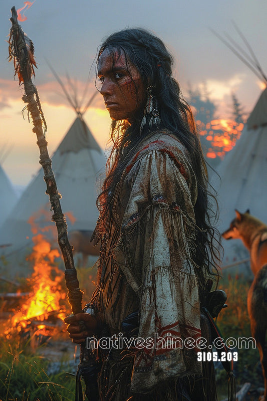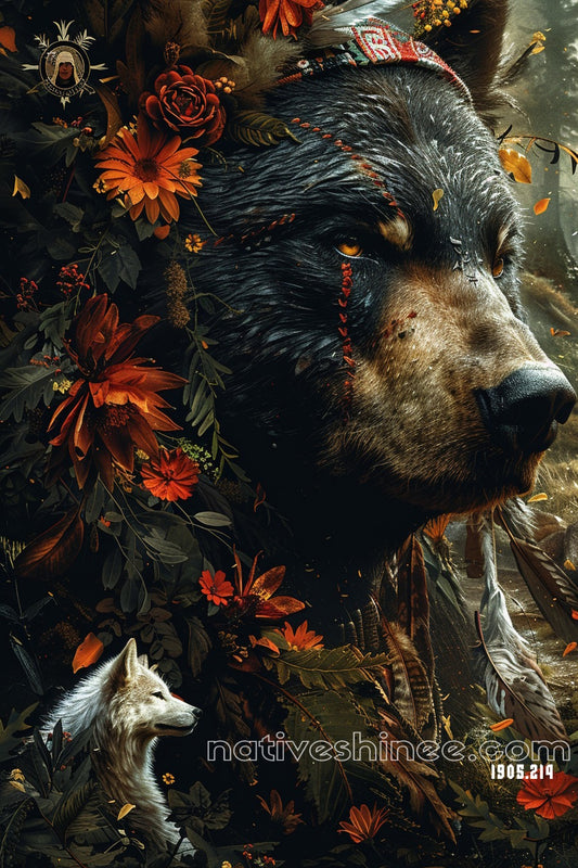 Bear Spirit Sentinel and Wolf Companion Canvas