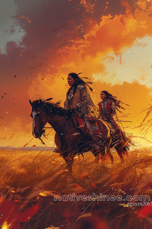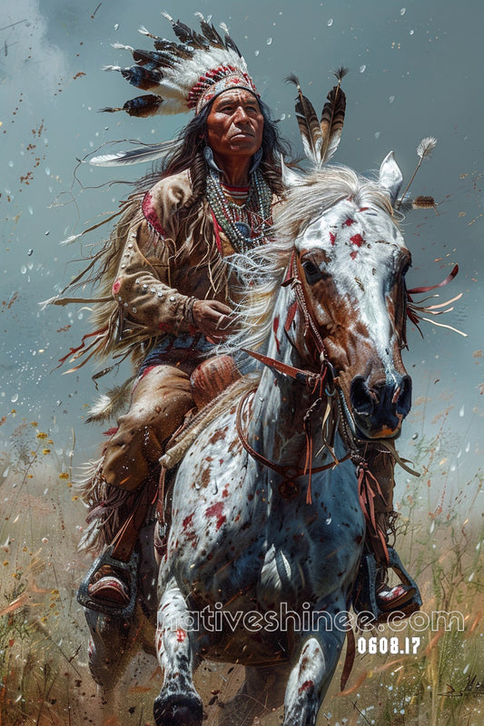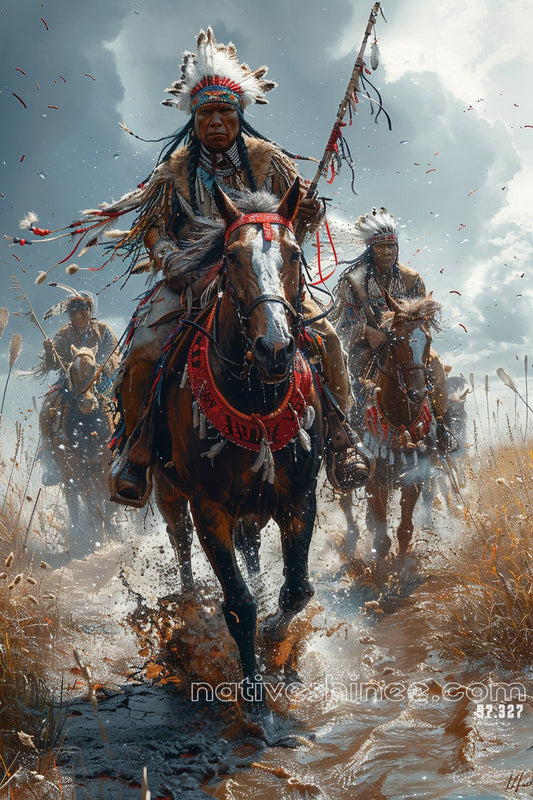 Autumn's Warrior A Portrait of Resolve Native American Canvas