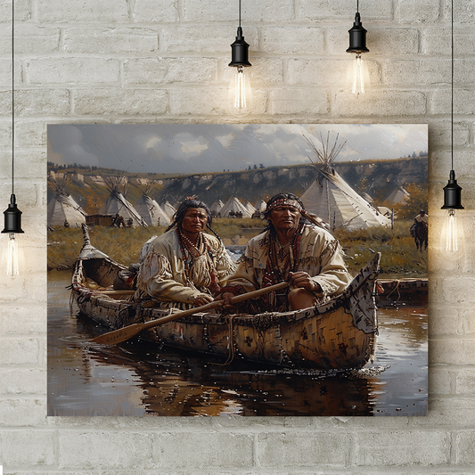 Paddling Through Time and Memory Native American Canvas