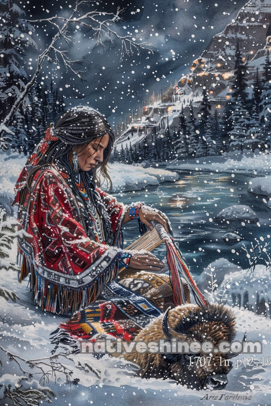 Silent Hooves Under Starry Skies Native American Horse Canvas