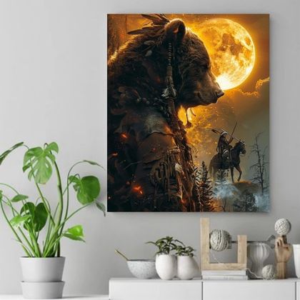 Brave Warriors Under the Watchful Sky Horse Native American Canvas