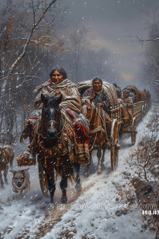 Chains of Winter: A Harrowing Journey Native American Canvas