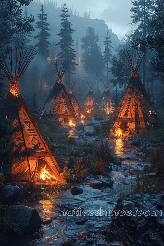 The Warmth of a Native Tipi in Fall Native American Canvas