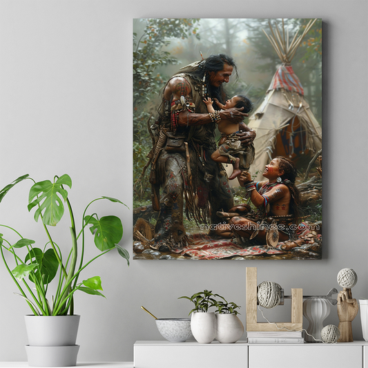 Chief and Children Nurturing Tribal Heritage Native American Canvas