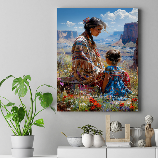 Cherishing Moments Among the Wildflowers Native American Canvas