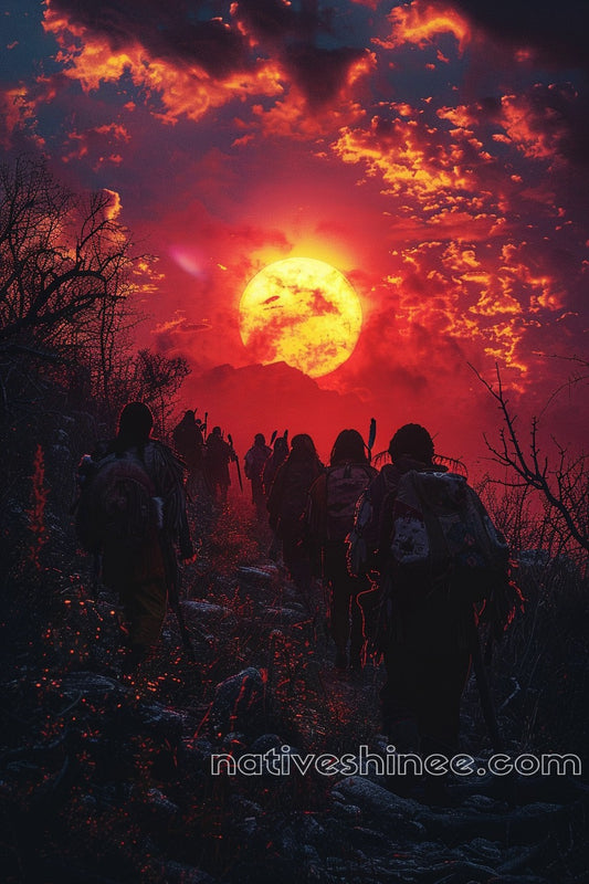 Trail of Shadows Under a Blood-Red Sky Native American Canvas