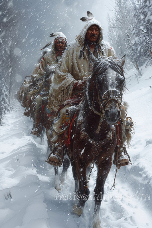 Trail of Snowbound Perseverance Native American Canvas