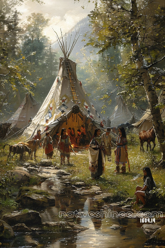 Twilight Whispers in the Winter Camp Native American Horse Canvas