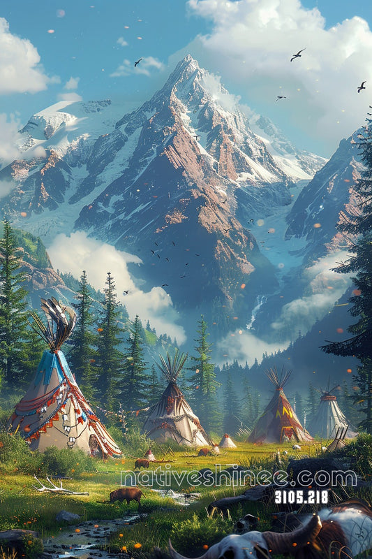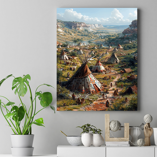 Vibrant Teepees in the Mountain Valley Native American Canvas
