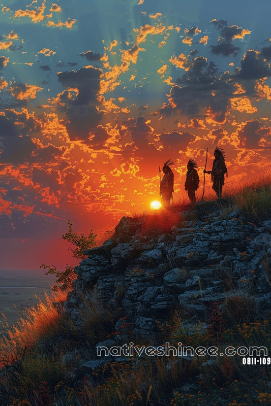 Vibrant Teepee Against a Fiery Sky Native American Canvas