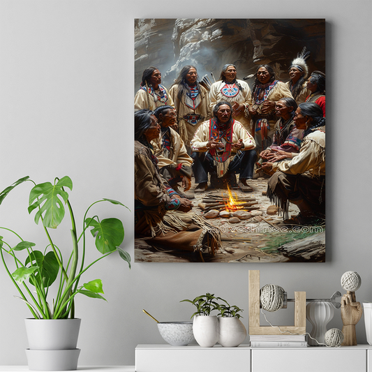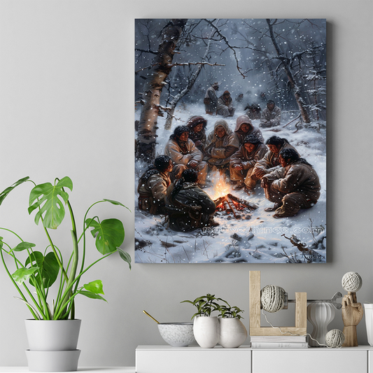 Circle of Warmth: Enduring the Cold Together Native American Canvas