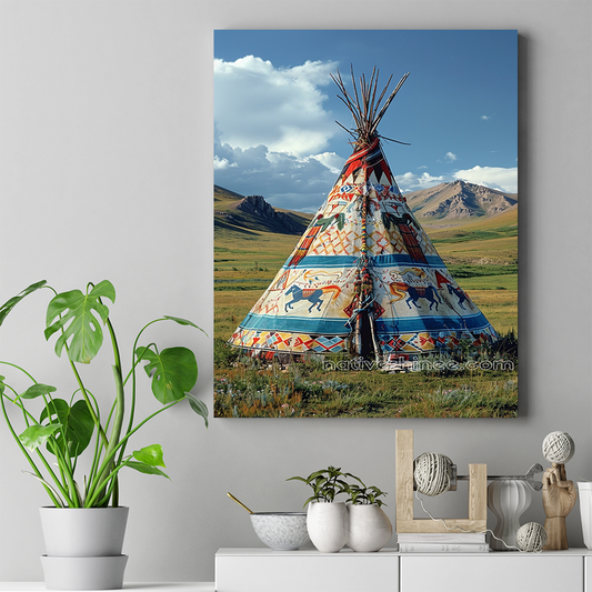 Colorful Teepee in the Plains Native American Canvas