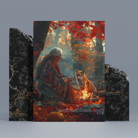 Whispers of Wisdom: The Elder and the Fox Native American Canvas