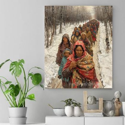 Windswept Journey: Native Warrior on Horseback Native American Horse Canvas