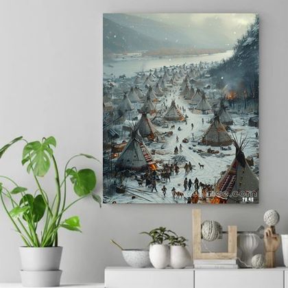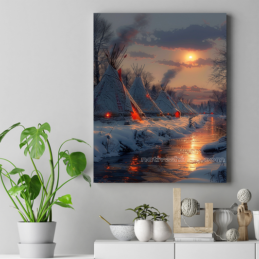 Winter Gathering - The Spirit of Unity in Native Tradition Native American Canvas