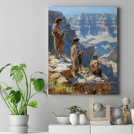 Young Warriors Overlooking the Vast Canyon Native American Canvas