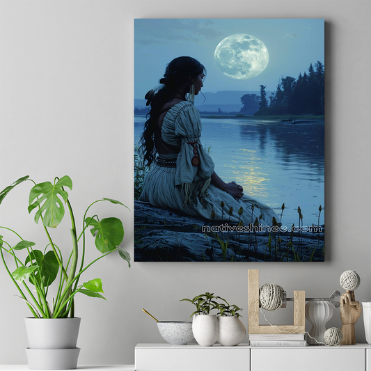 A Native American Woman's Tranquil Moment Canvas