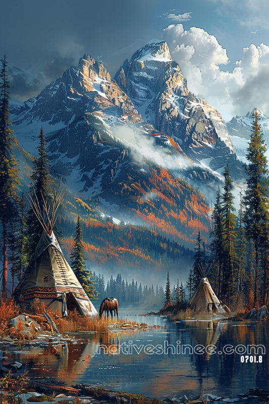 A Native Family's Hearth Amidst the Snow Native American Canvas