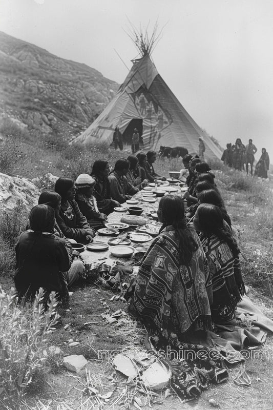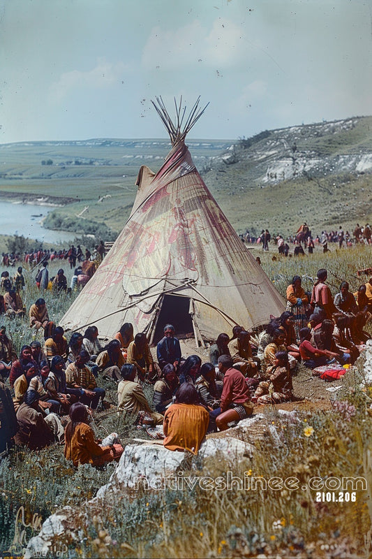 Gathering in the Glow: Threads of Tradition Native American Canvas
