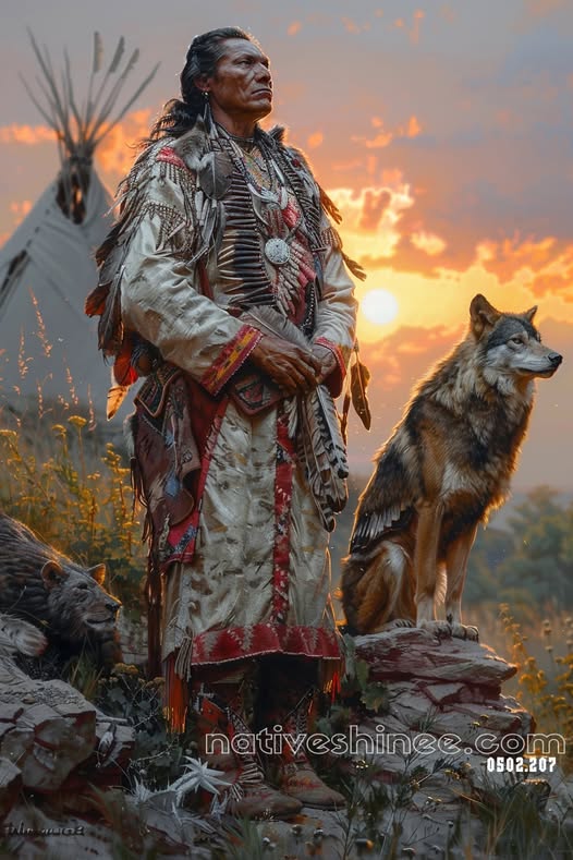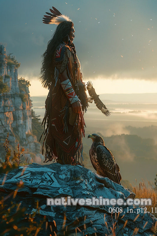 Guardian of the Canyon: Native Warrior at Sunset Native American Canvas