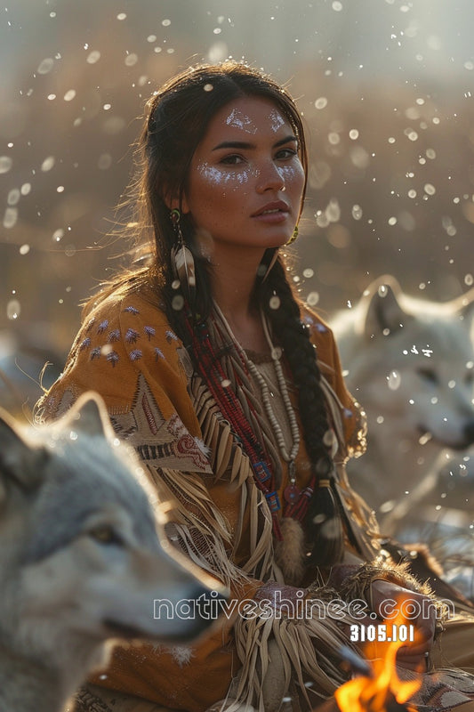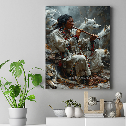 Harmony with Nature: Flute and Wolves Native American Canvas