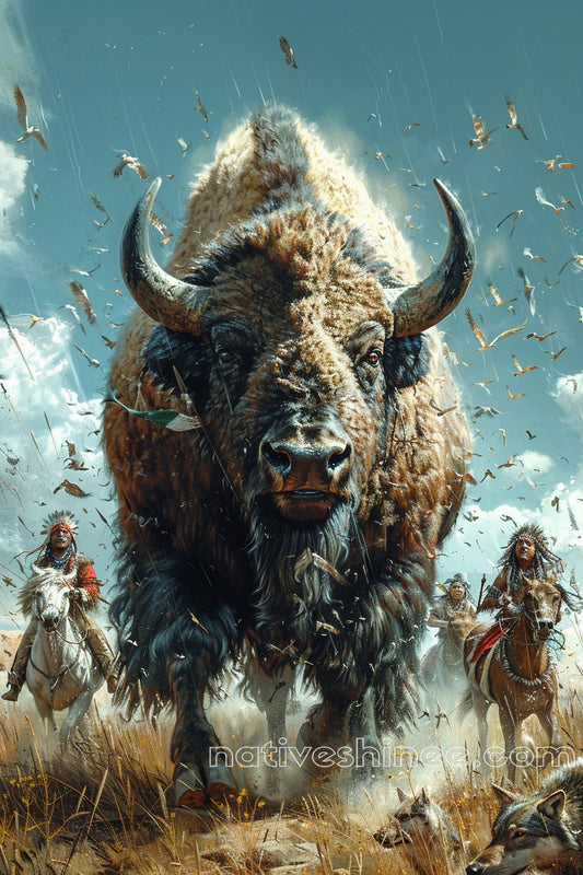 The Great Spirit’s Guardian: The Sacred Bison Native American Canvas