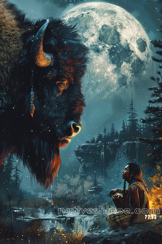 Moonlit Spirit: The Bison's Call Native American Canvas