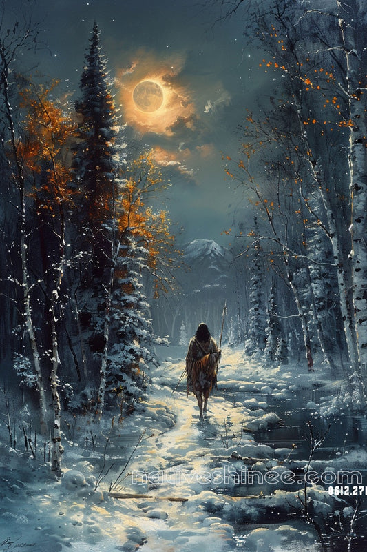 Moonlit Journey: The Path of the Warrior Native American Canvas