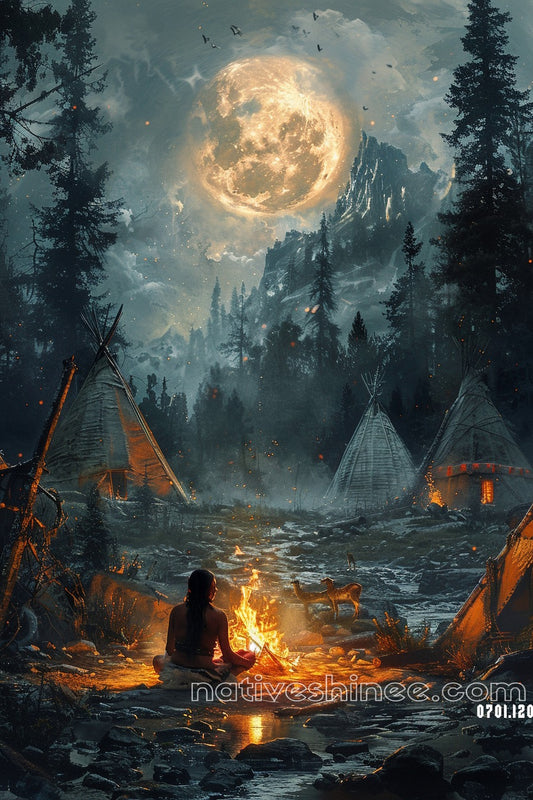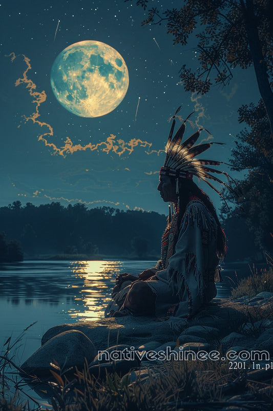 Moonlit Reflections: Native American Canvas