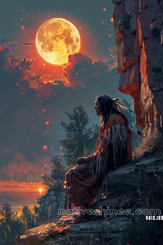 The Silent Watcher: A Warrior's Reflection Native American Canvas