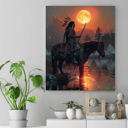 Moonlit Warrior: Guardian of the Night Native American Canvas