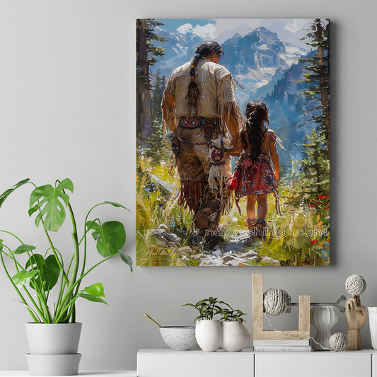 Father and Daughter, Journey into Tradition Native American Canvas