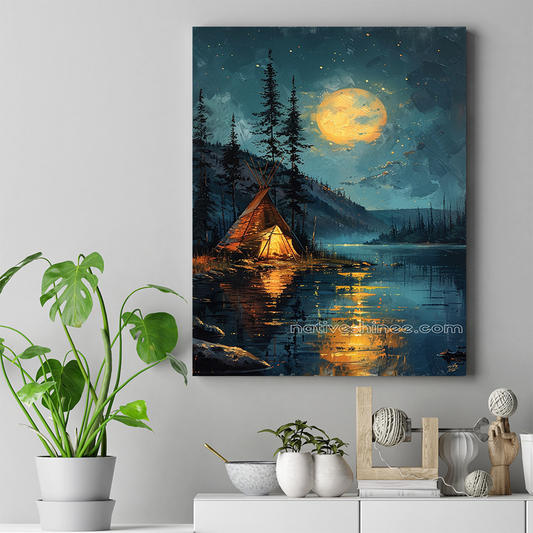 Moonlit Refuge: A Night of Peace Native American Canvas