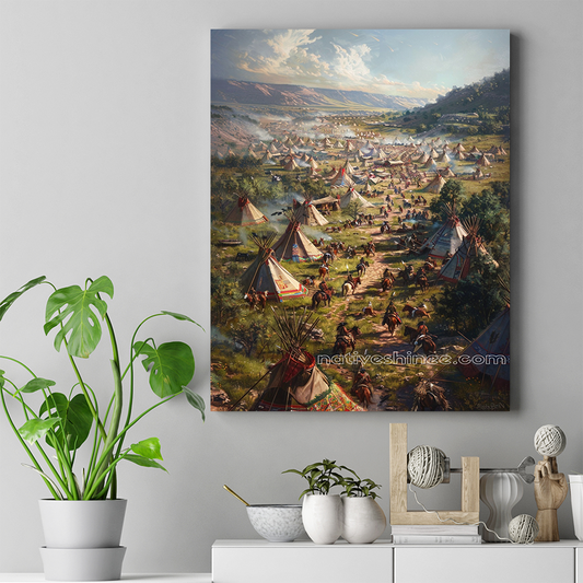The Heart of the Plains: A Thriving Community Native American Canvas