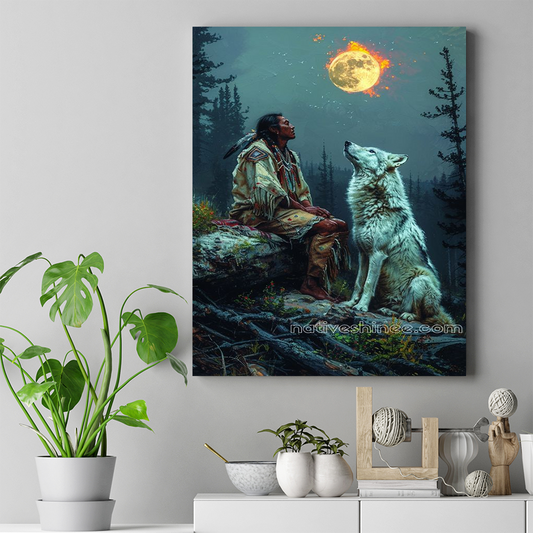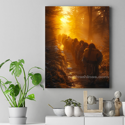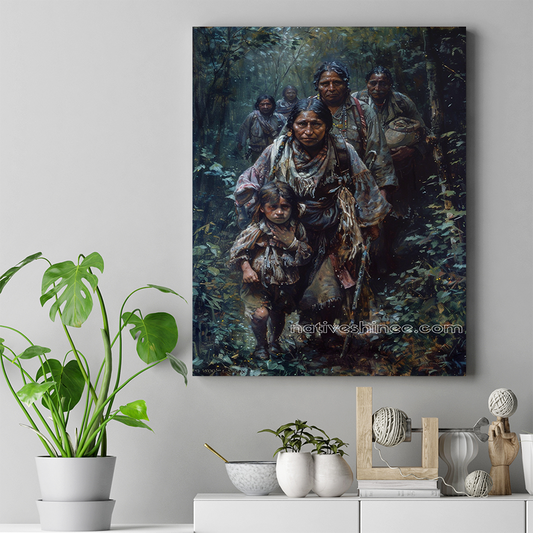 Rainfall Reverie: Warriors in Reflection Native American Canvas