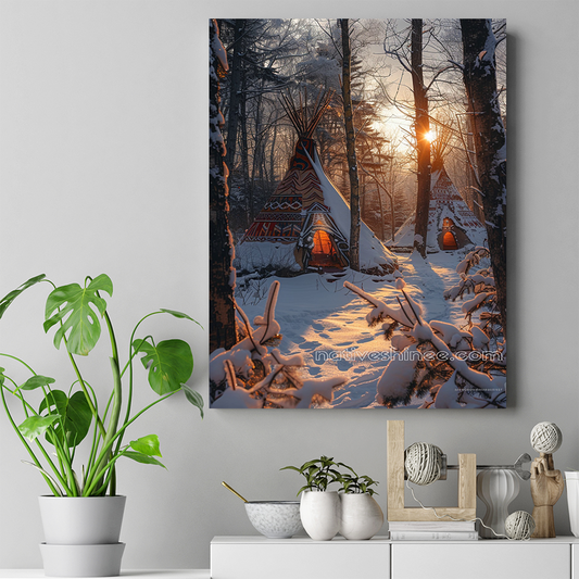 Sunrise Over Snow-Covered Teepees Native American Canvas