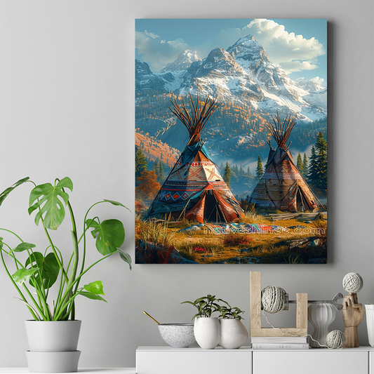 Tranquil Teepee Village in the Mountains Native American Canvas