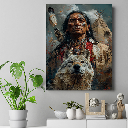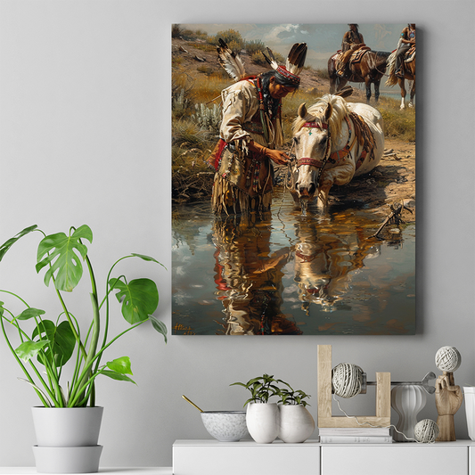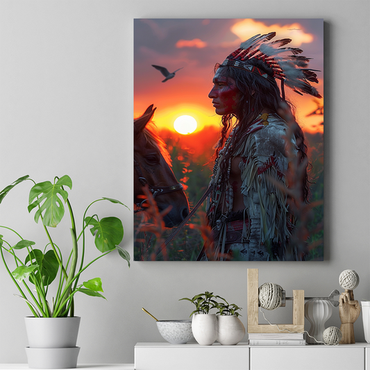 The Brave Warrior and His Loyal Horse Native American Canvas