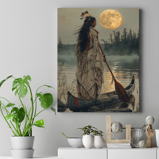 Silent Voyage: Two Souls and the Moon Native American Canvas