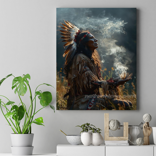 Harmony with Nature: Flute and Wolves Native American Canvas