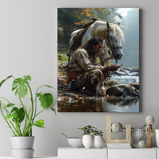 Quiet Moment for Warrior and Horse Native American Horse Canvas