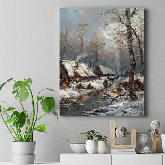 A Native Family's Hearth Amidst the Snow Native American Canvas