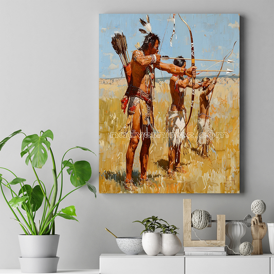 Native American Warriors Honing Their Archery Skills Native American Canvas