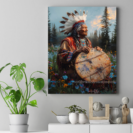 Elder's Sacred Drumbeat of Heritage Native American Canvas