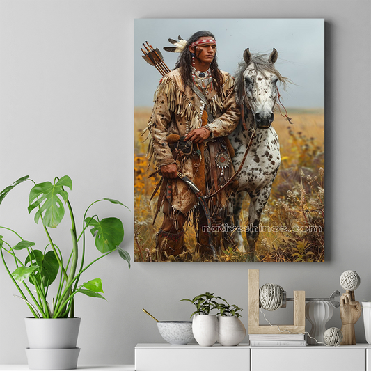 Warrior's Journey: Embracing the Storm Native American Horse Canvas