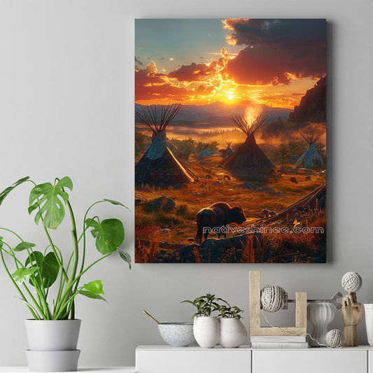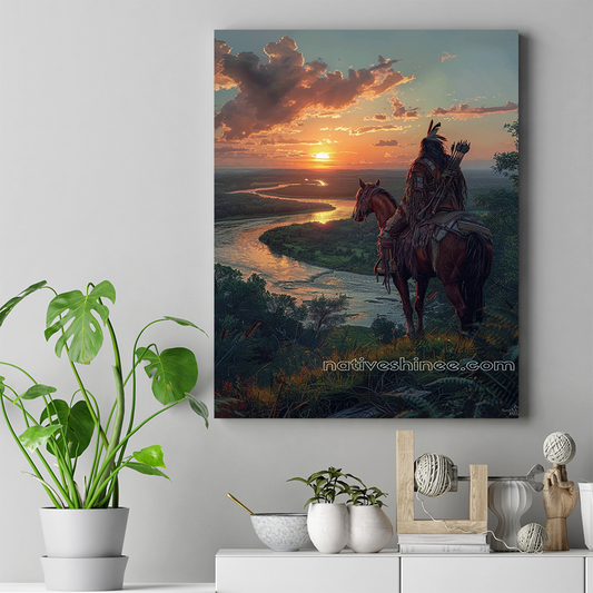 The Warrior's Peaceful Watch Native American Sunset Horse Canvas