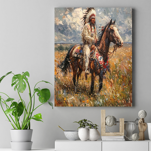 Proud Warrior Rides Across Golden Plains Native American Horse Canvas