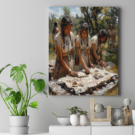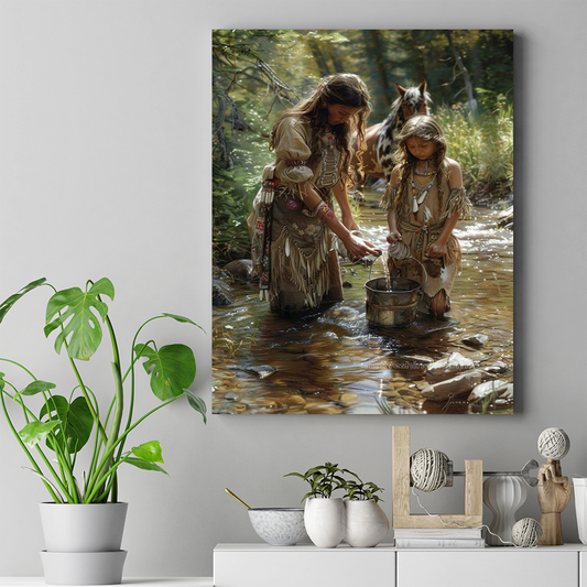 Warriors Navigate Peaceful Waters in Canoe Native American Canvas