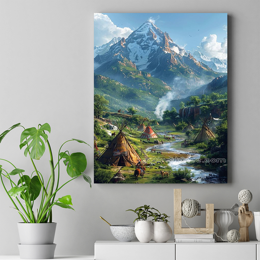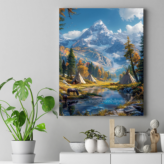 Peaceful Tipi Village in the Alpine Valleys Native American Canvas